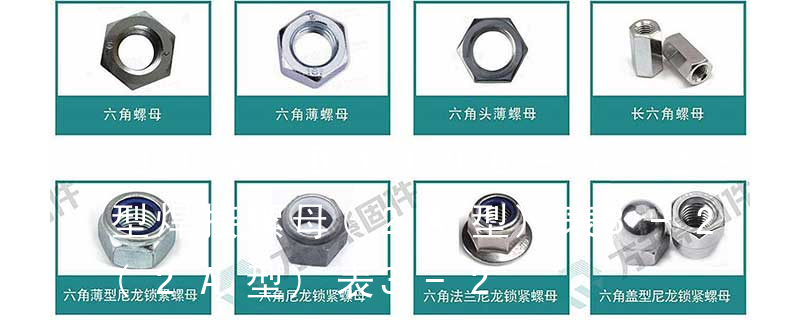 型六角螺母 細牙 GB /T 6176-2000 六角法蘭面螺母 GB /T 6177.1-2000 六角法蘭面螺母 細牙 GB /T 6177.2-2000 1型六角開槽螺母-A和B級 GB 6178-86 1型六角開槽螺母-C級 GB 6179-86 2型六角開槽螺母 GB/T 6185.1-2000 2型全金屬六角鎖緊螺母 ISO7042:1997 GB/T 6185.2-2000 2型全金屬六角鎖緊螺母 細牙 ISO10513:1997 GB/T 6186-2000 2型全金屬六角鎖緊螺母 9級 ISO7720:1997 GB/T 618