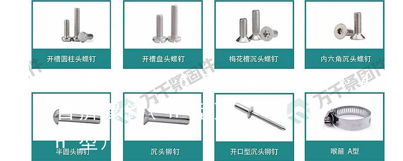 六角花形等;內(nèi)扳擰:一字槽、十字槽H型、十字槽Z型、十字槽F型、四方槽、復(fù)合槽、內(nèi)花鍵、內(nèi)六角花形、內(nèi)三角、內(nèi)六角、內(nèi)12角、離合器槽、六葉片型槽、高扭矩十字槽等。3、螺紋種類螺紋種類繁多,有自攻螺紋(