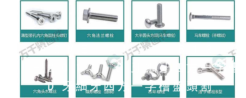 (鐵板牙自攻螺絲) B-2: Plastic Tapping Screw. (塑膠用,自攻螺絲) C: Wooden Screw : 木工螺絲 D: Drywall Screw :水泥墻螺絲 E: Self Drilling Screws鉆尾螺絲(不銹鋼鉆尾螺絲,復合材料鉆尾螺絲) F:膨脹螺絲,四片膨脹螺絲又 3.螺釘:也是由頭部和螺桿兩部分構成的一類緊固件,按用途可以分為三類:機器螺釘、緊定螺釘和特殊用途螺釘。機器螺釘主要用于一個緊定螺紋孔的零件,與一個帶有通孔的零件之間的緊固連接,不需要螺母配合(這種連接形式稱為螺釘連接,也屬于