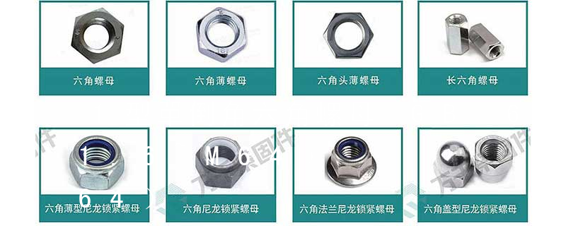 1型六角螺母:標準為GB/T 6170,螺紋規格為M1.6~M64、性能等級為6、8、10、A2-50、A2-70、A4-50、A4-70、CU2、CU3和AL4級、產品等級為A和B級的1型六角螺母。A級用于D≤16mm;B級用于D>16mm的螺母。2型六角螺 六角薄螺母 GB /T 6172.1-2000 非金屬嵌件六角鎖緊薄螺母 GB /T 6072.2-2000 六角薄螺母 細牙 GB /T 6173-2000 六角薄螺母 無倒角 GB /T 6174-2000 2型六角螺母 GB /T 6175-2000 2型六角螺母 細牙 GB /