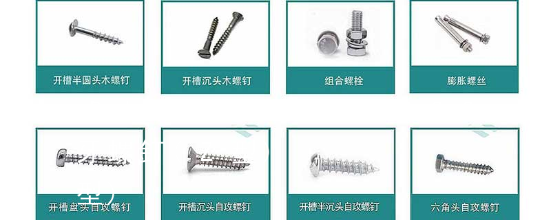 自切自攻螺釘有以下幾種型式:十字槽盤頭自切自攻螺釘,十字槽沉頭自切自攻螺釘。十字槽半沉頭自切自攻螺釘,六角頭自切自攻螺釘。3、自擠自攻螺釘(自攻鎖緊螺釘)自擠自攻螺釘的螺紋一般為機螺紋,很少采用自攻螺紋。在扳擰 木螺釘有十字槽沉頭、十字槽半沉頭、十字槽圓頭、開槽(一字槽)沉頭、開槽半沉頭、開槽圓頭、六角頭等幾種,公稱直徑有1.6、2、2.5、3、3.5、4、5、6、7、8、10等系列,長度有6、8、10、12、16、20、25、3